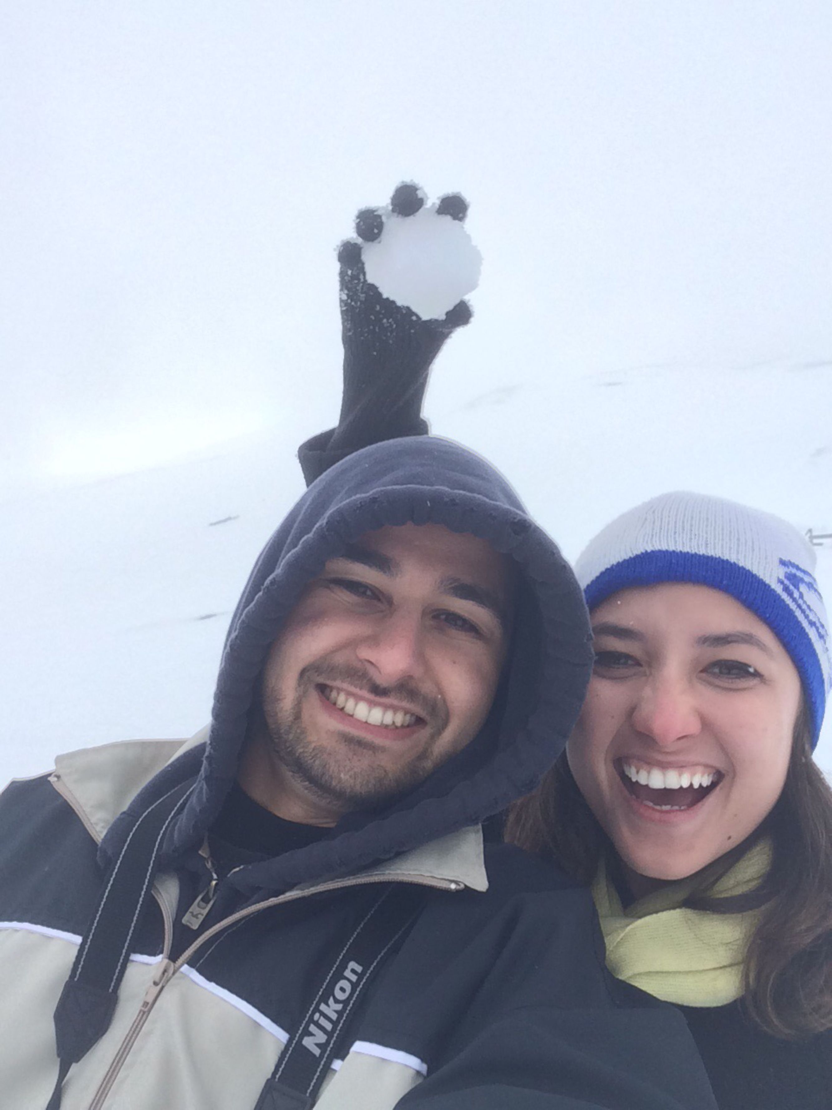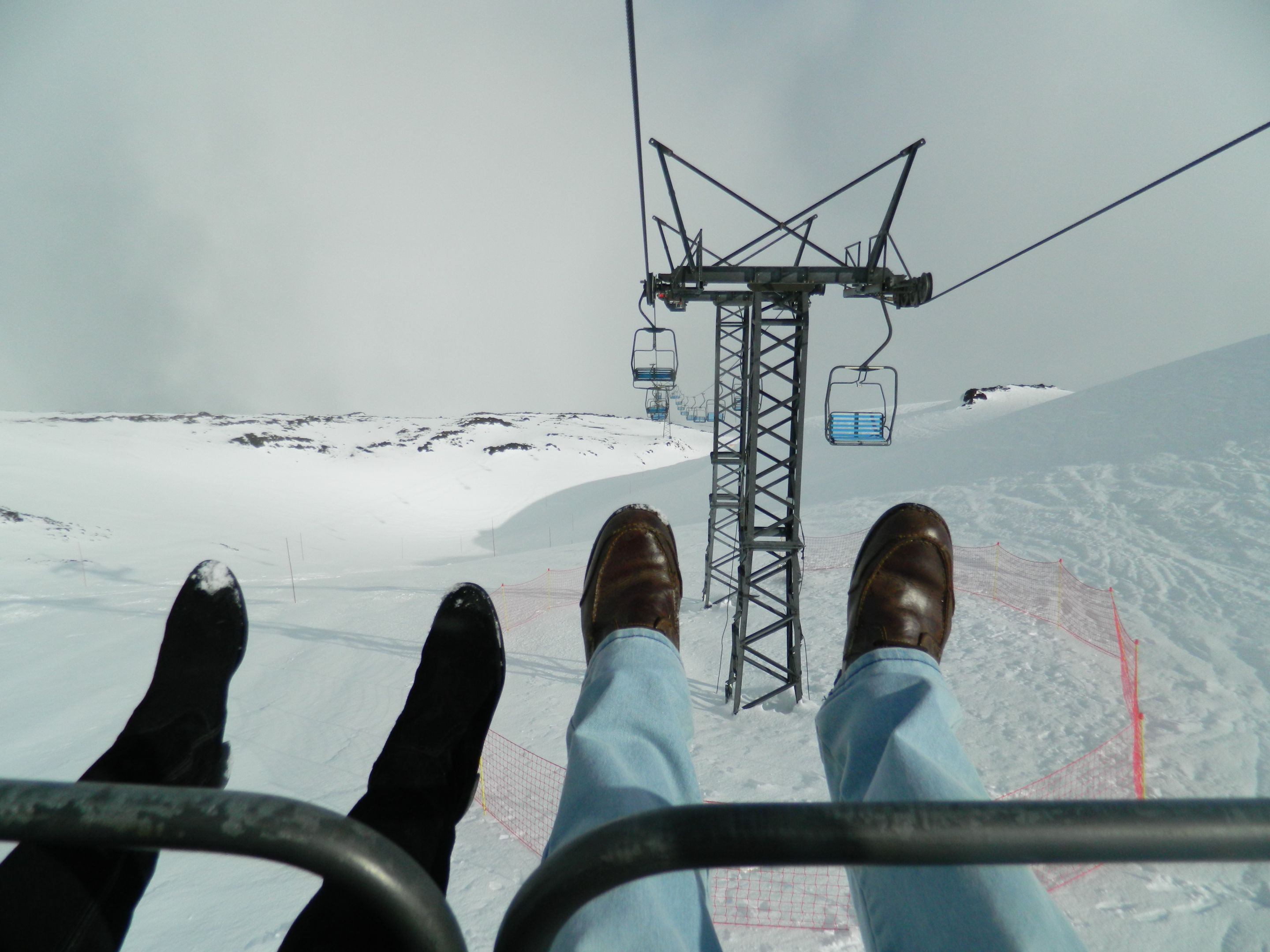 Saindo de Petrohué, no trajeto de volta no carro, vimos uma placa para Osorno. Como ainda estava cedo, decidimos desviar e sem querer chegamos ao pé do Vulcão Osorno. Estava nevando e muito frio. Mesmo assim, resolvemos comprar o trajeto de teleférico até o cume. Apesar do frio, foi um dos melhores passeios que fizemos por lá. Demos a sorte do tempo abrir e vermos a vista do topo do vulcão.