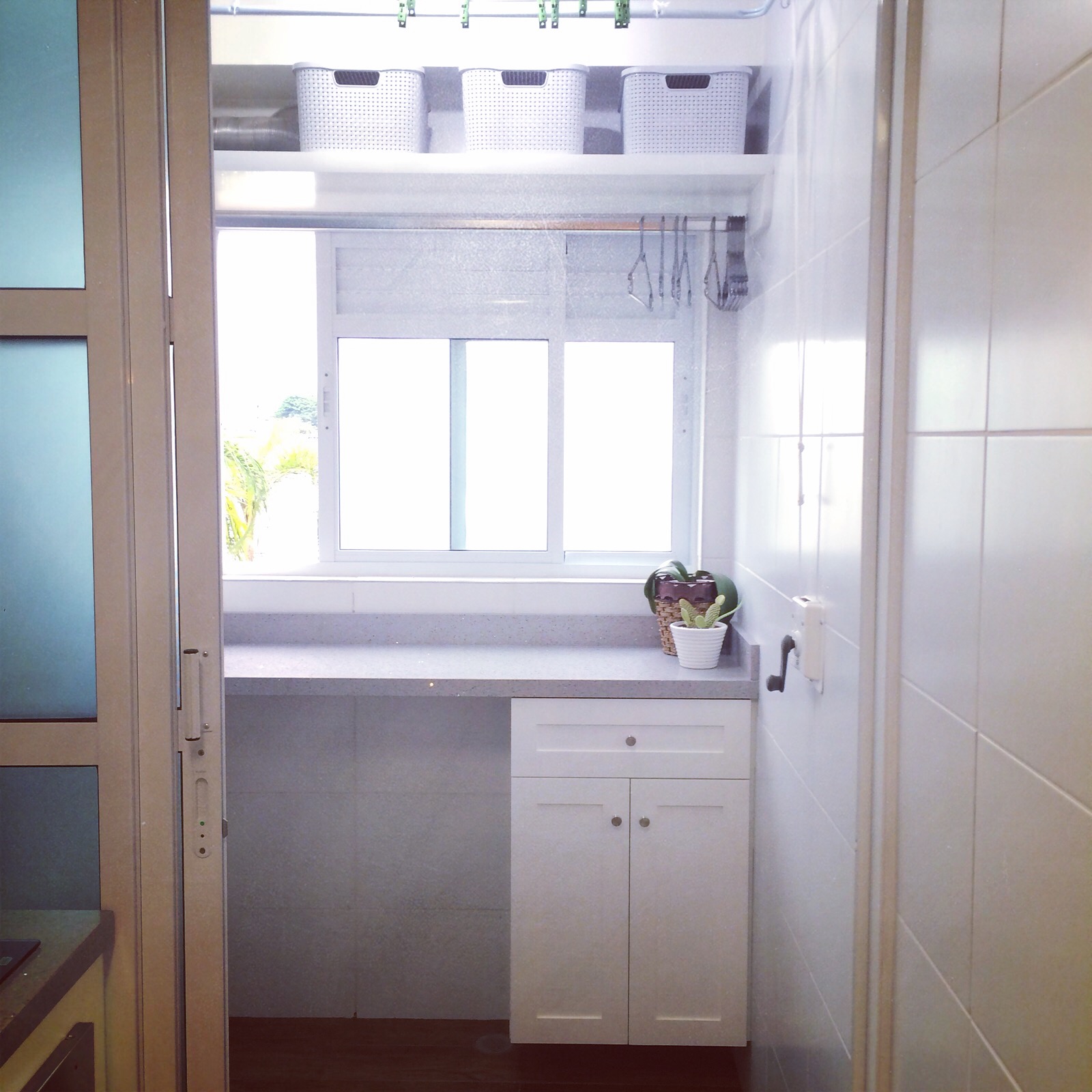 Aproveitamos cada espaço. Temos muitos armários, mas sem poluir ou prejudicar a circulação!