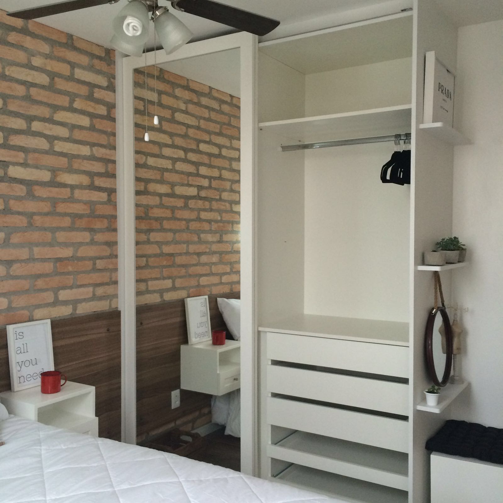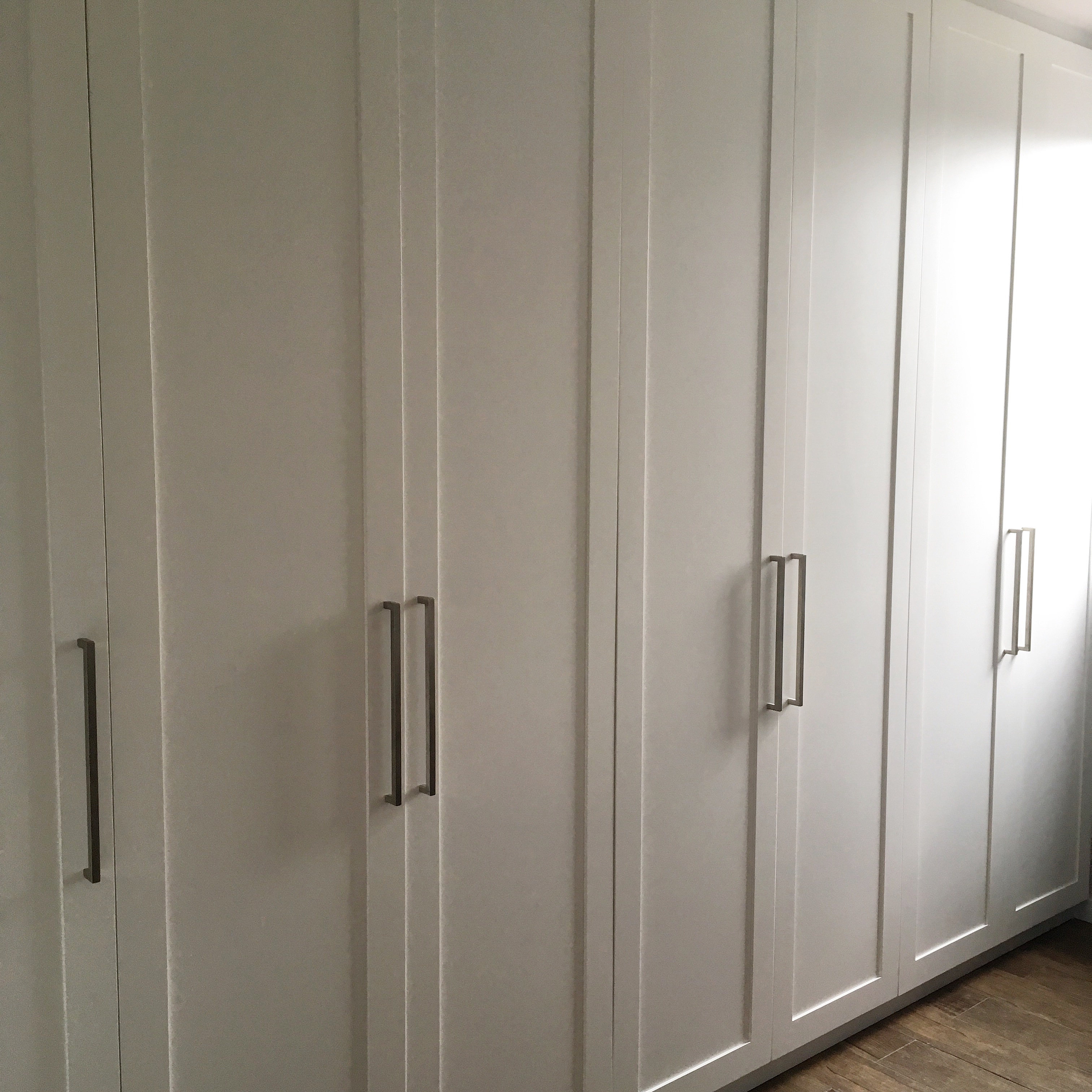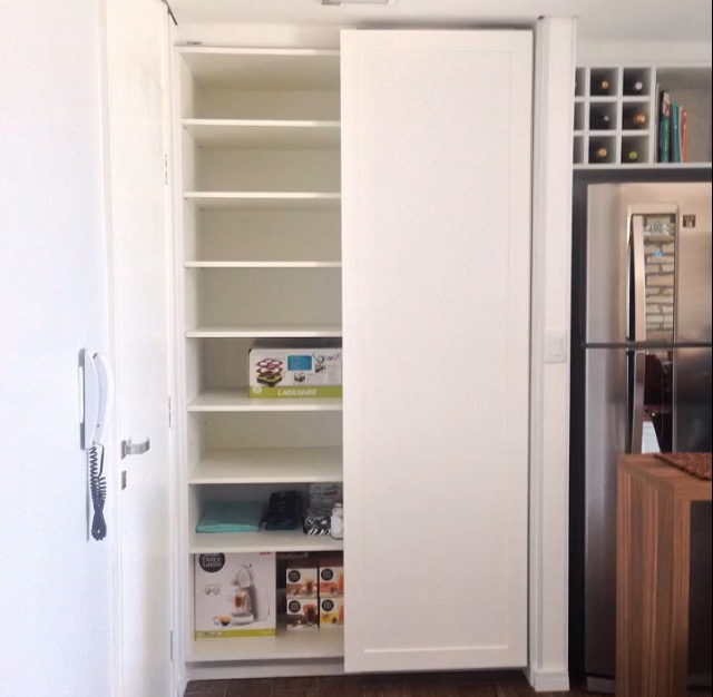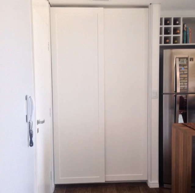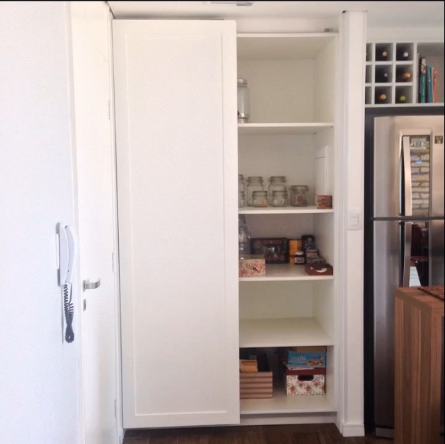 Na época, quase não se via armários assim e, por isso, consultei um marceneiro conhecido dos meus pais. Ele já havia feito os armários de dois apartamentos dos meus pais e me ajudou muito na melhor solução para os nossos tão amados armários com molduras.