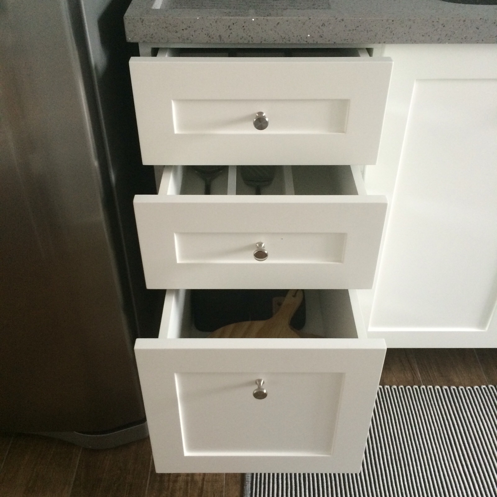Por acompanhar todos os programas de decoração internacionais (alô Home&Health!), sempre sonhei com aquelas cozinhas americanas, com aqueles armários lindos de portas com molduras e puxadores vintages.
